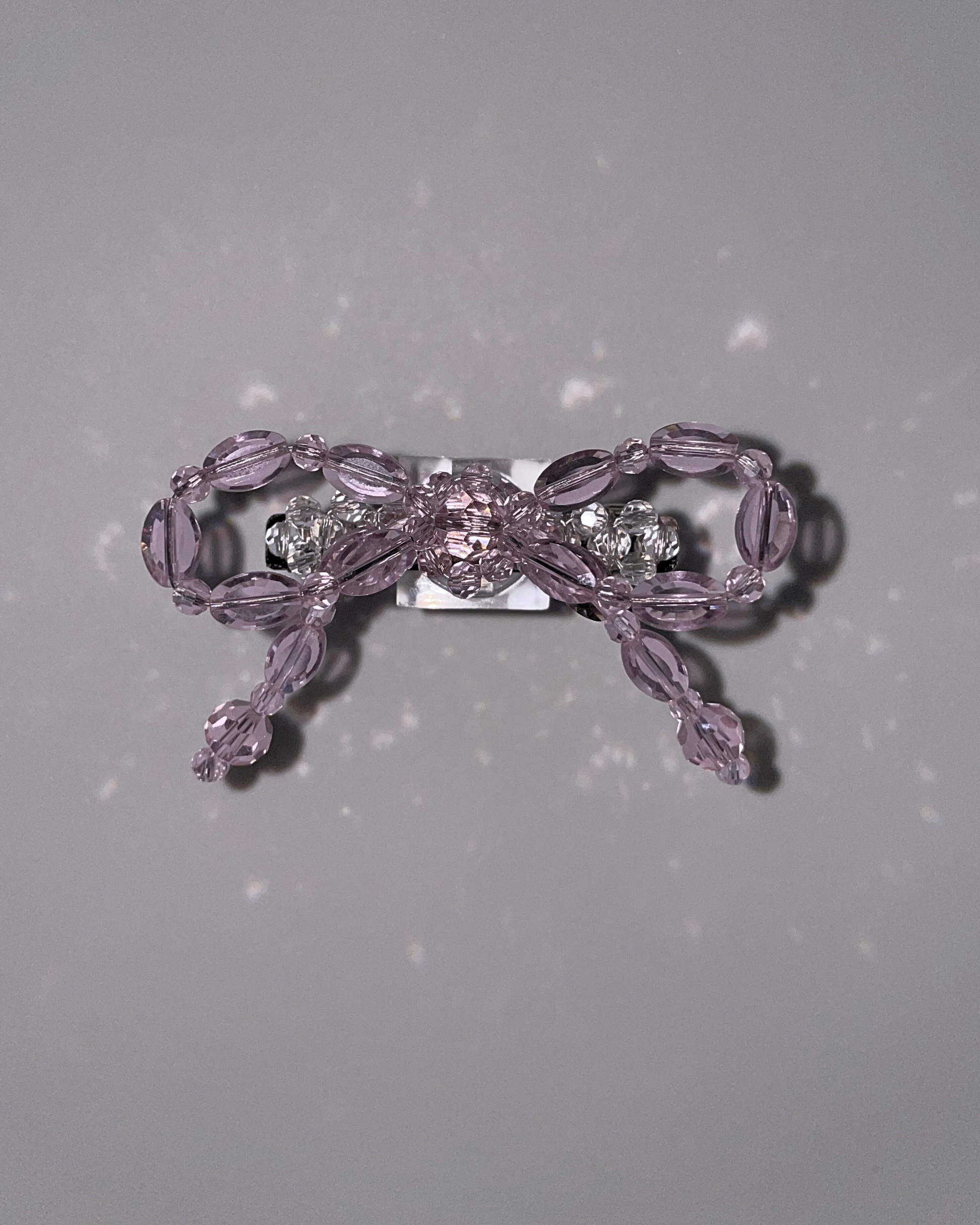 La barrette Bow a été spécialement conçue pour être portée sur votre tête dans n'importe quelle direction. Les cristaux en suspens suivront selon le côté où elle sera portée. Chaque clip est composé de 66 cristaux enfilés à la main sur une barrette française en acier inoxydable